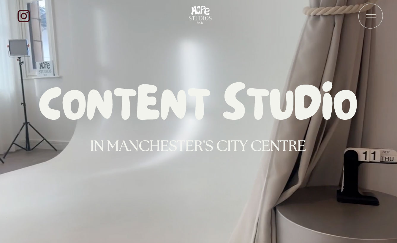 This hero moment puts branding front and centre, using oversized, characterful typography and a full-bleed studio visual to make an immediate statement. Subtle motion and soft transitions add polish without distracting from the message, letting the space and identity do the heavy lifting. It’s bold, confident, and designed to be felt as much as it is read.